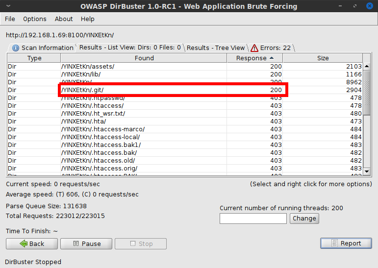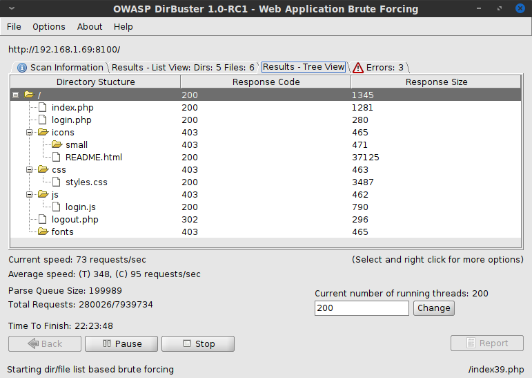 Checking back on Dirbuster, I found that it was not yielding anything particularly interesting: